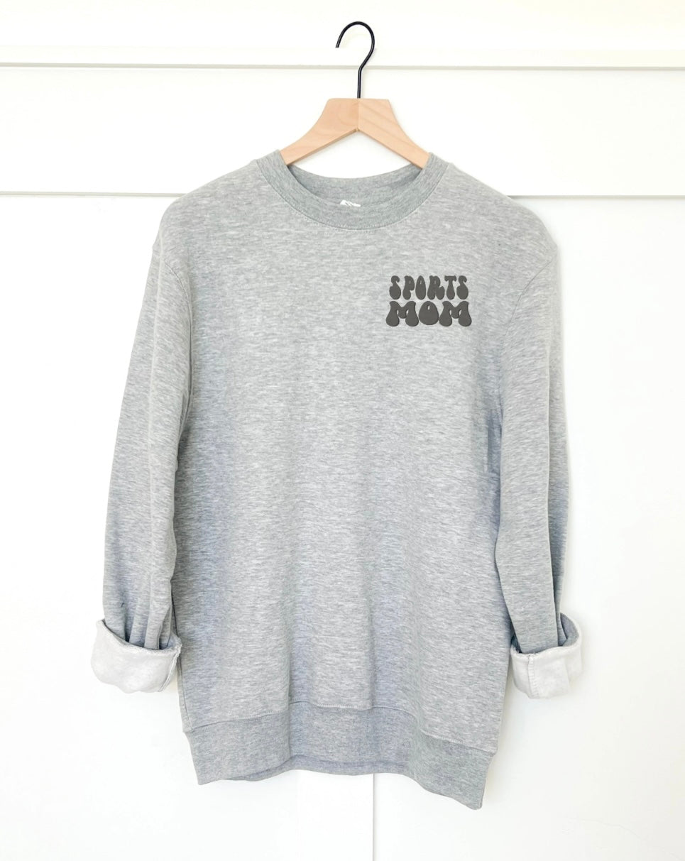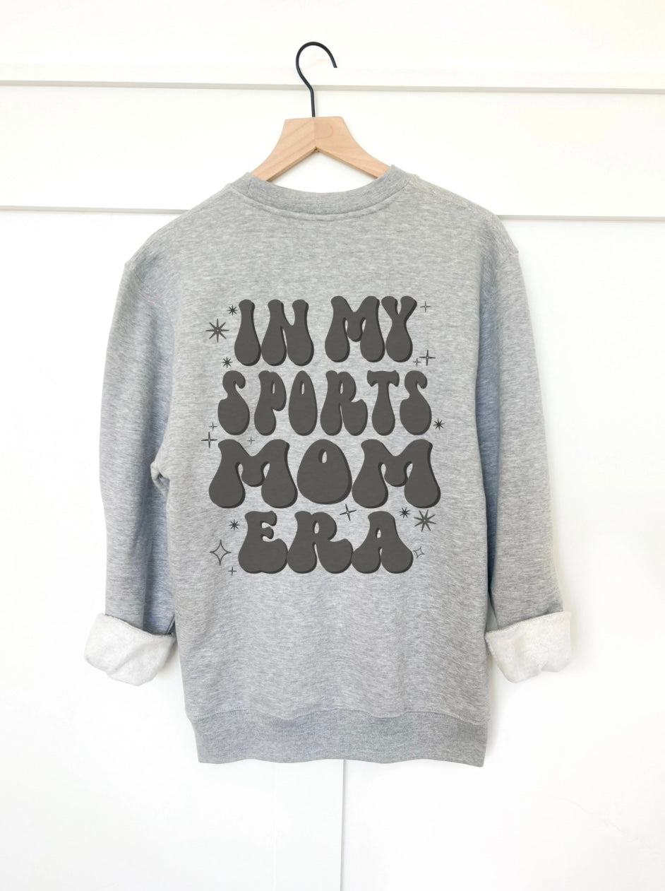 In my sports mom era back print basic sweatshirt. Small sports mom print on the front left chest.